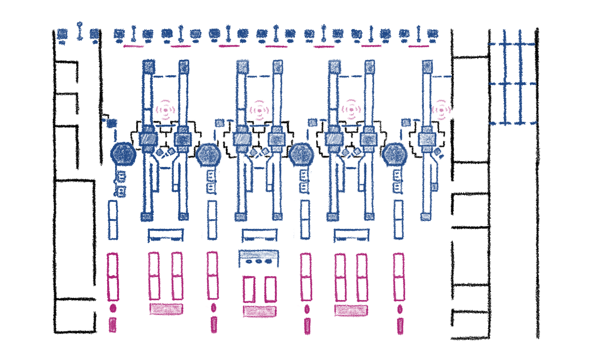 Our ideation of the physical space began with sketches of the current layout
