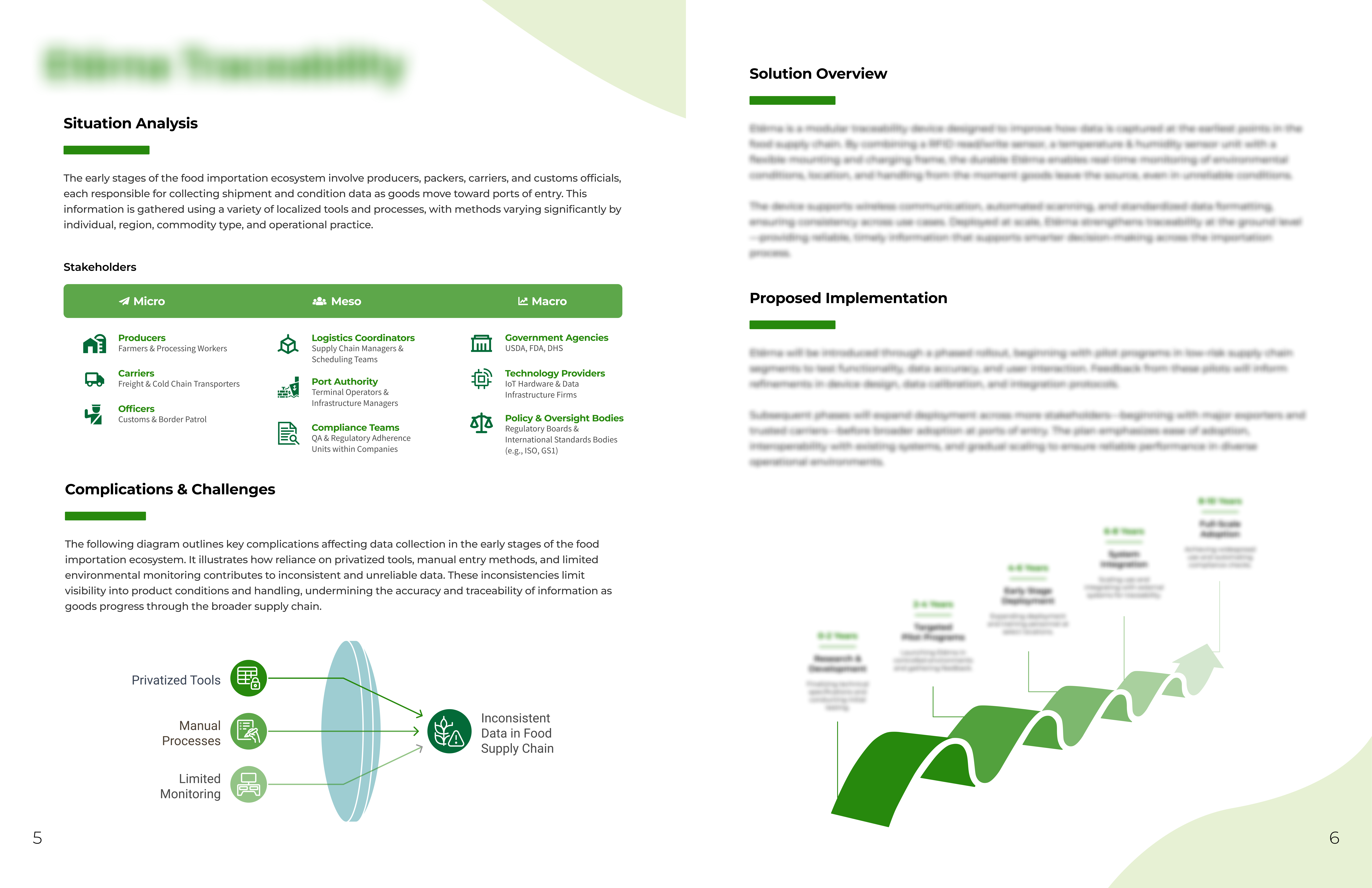 Our team designed a coordinated framework of digital solutions aimed at enhancing transparency, traceability, and resilience across the importation ecosystem. Through integrated data systems, IoT-enabled traceability concepts, and digital-twin scenario modeling, we proposed future-focused strategies to modernize food importation at scale.