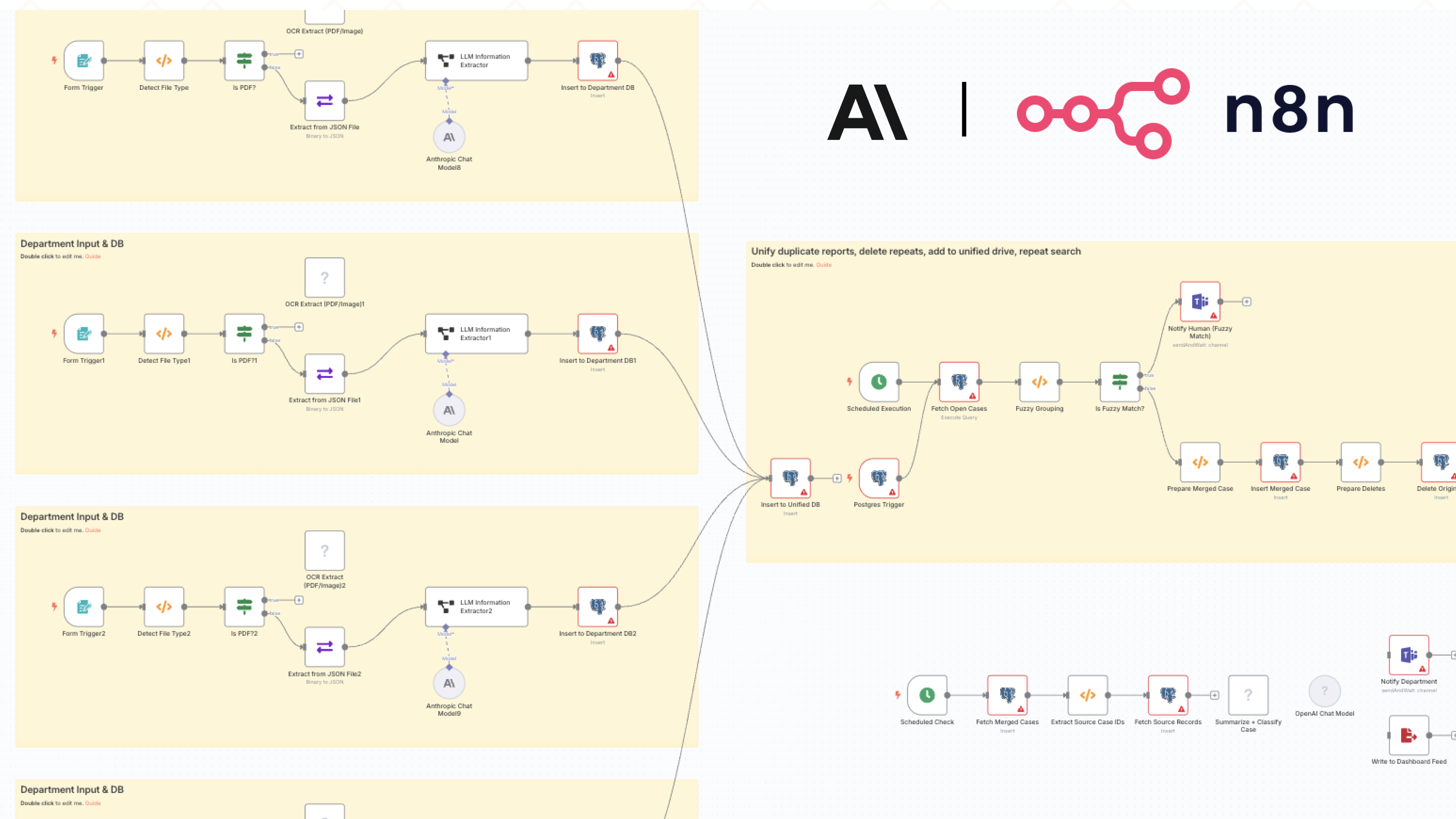 To model the backend, I used n8n, a workflow automation tool. This prototype simulated how data could move between systems, using custom Claude agents connected via API. It showed how structured records could be created, updated, and routed between teams—without the need to replace existing software.