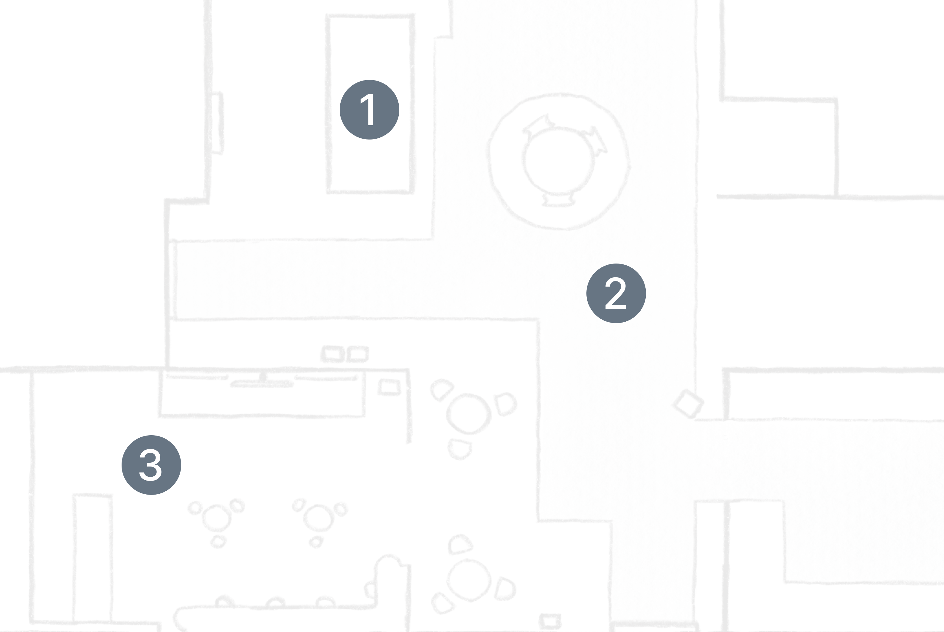 Our collaborative efforts continued with a brainstorming workshop involving docent employees whose valuable input helped us identify key areas for improvement. With these insights, we proposed practical alterations, including the addition of welcoming lobby seating, a reconfiguration of café seating, adjustments to the admissions desk, and the introduction of floor-marked thoroughfares.